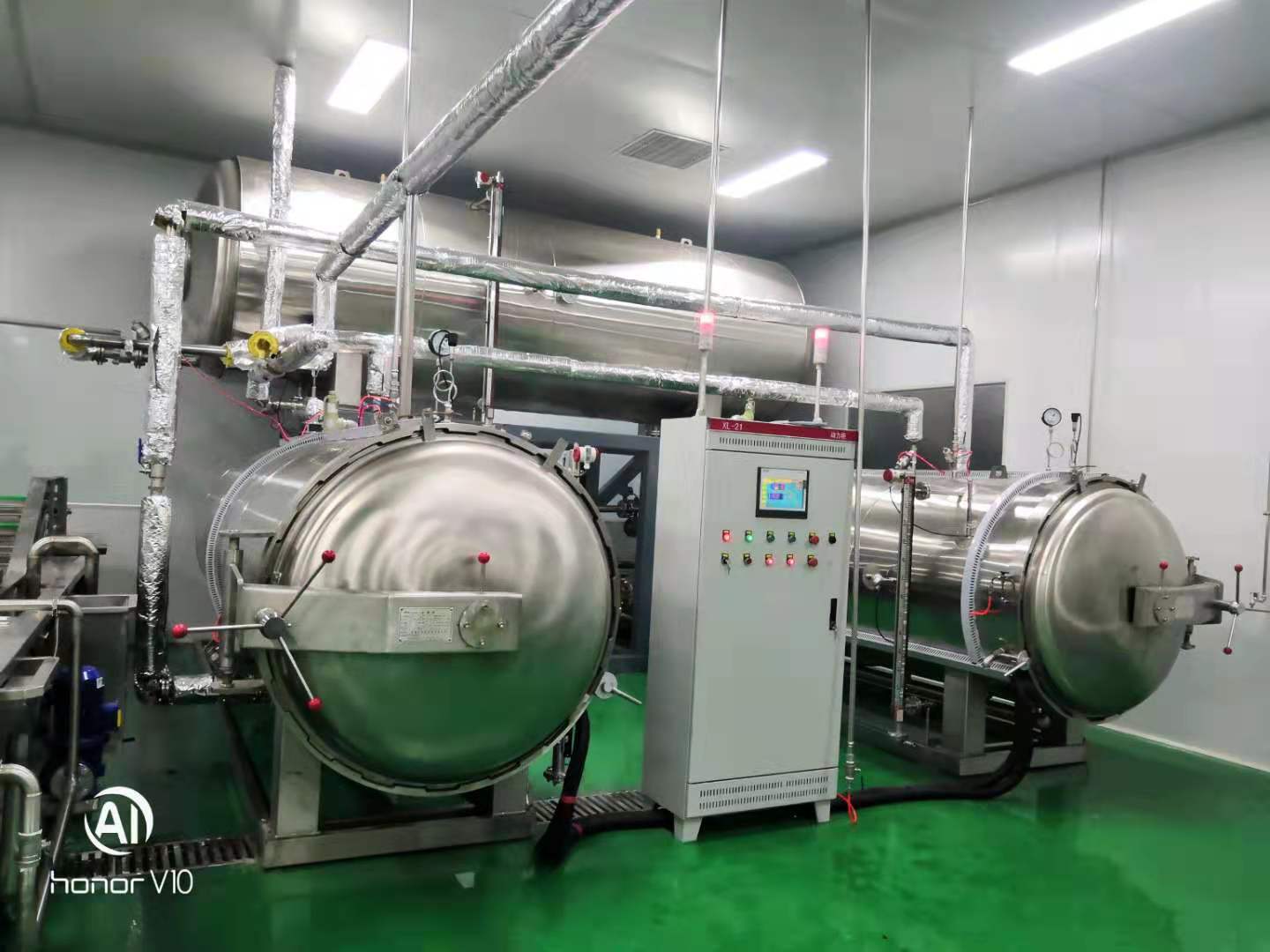 物力的消耗,降低了生产成本。两台杀菌锅同时使用一罐热水工作,比双层杀菌锅产能提高一倍。