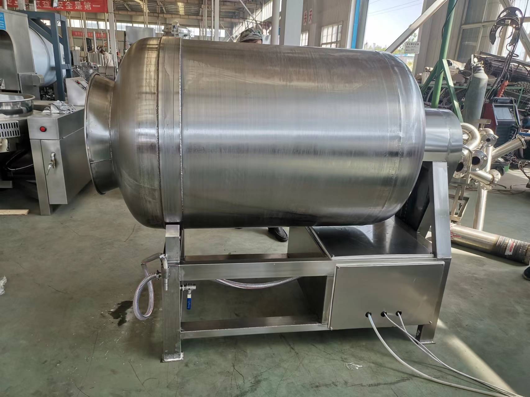 本设备架体全部采用不锈钢制作,椭圆形封头滚揉空间大、设计合理、运行噪音小。用户可自行设定滚揉机自动滚揉、间歇功能。适用于西式香肠、火腿、培根、烤肉以及传统中式禽类、酱肉类、休闲类食品的腌制加工。