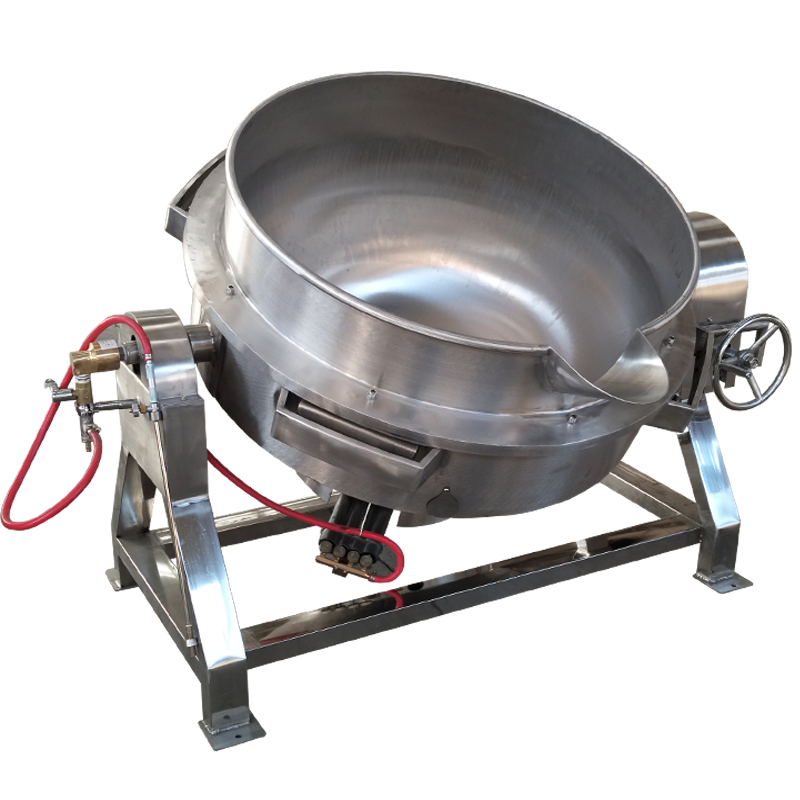5、可倾式夹层锅在使用前应检查转动部位润滑是否良好,应将油杯中注满润滑脂并将涡轮、蜗杆的咬合处,注入适量润滑脂。