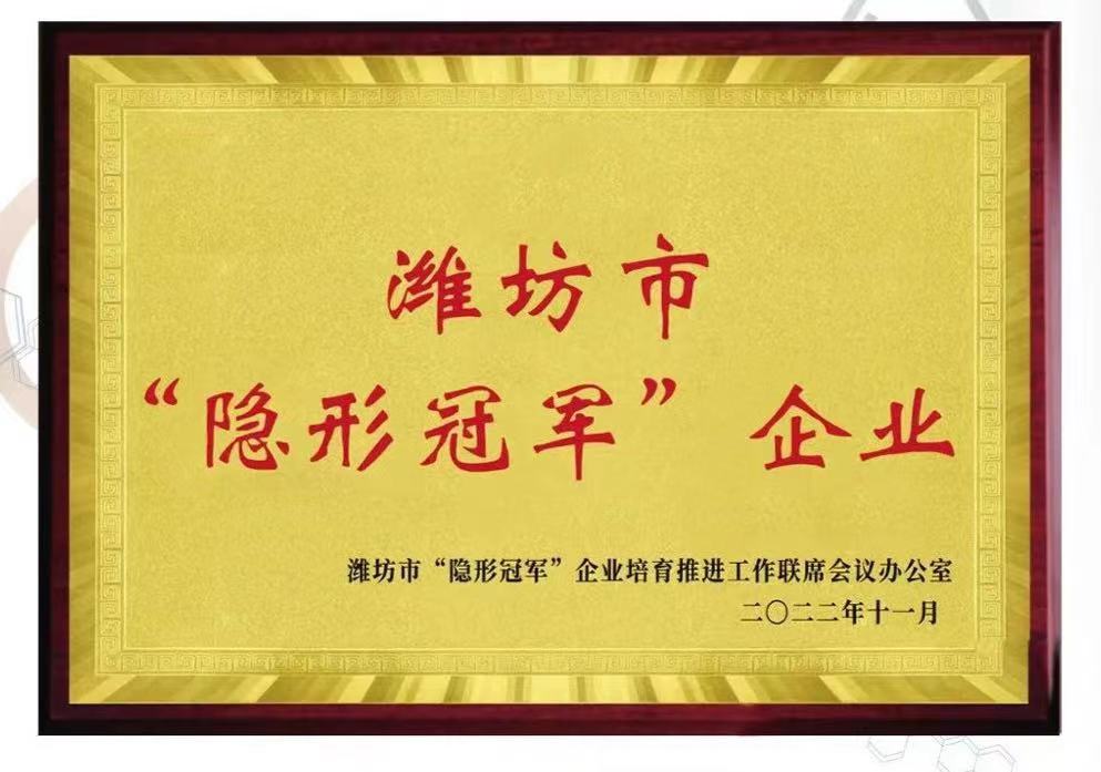 近日,潍坊市“隐形冠军”企业培育推进工作联席会议办公室下发了《关于公布2022年潍坊市“隐形冠军”企业的通知》文件,山东桂冠机械有限公司榜上有名,荣获2022年潍坊市“隐形冠军”企业称号。