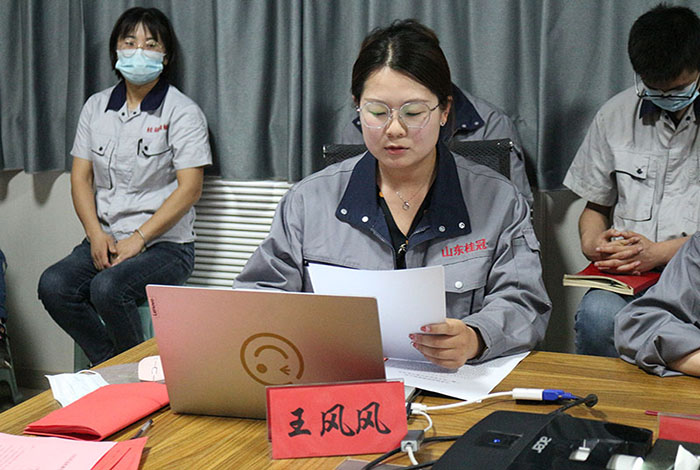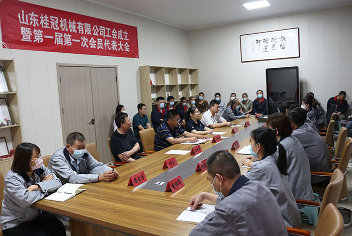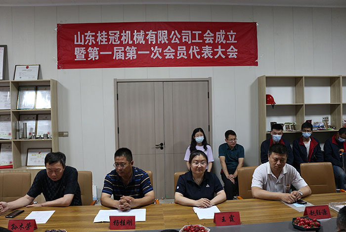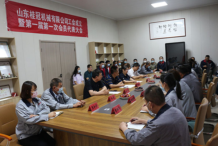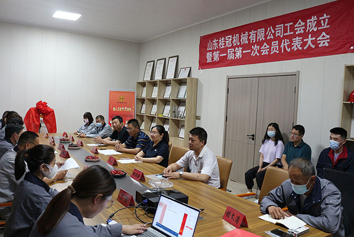 2022年06月16日山东桂冠机械有限公司一届一次工会会员代表大会会议准时召开,出席本次工会会议重要领导人员有:市总工会党组成员副主席王霞同志,滨河片区党工委副书记王泽和同志,桂冠机械有限公司董事长杨桂刚同志等相关领导,在滨河片区总工会专职副主席孙木荣宣读完市总工会《关于同意召开山东桂冠机械有限公司工会一届一次会员代表大会的批复》后,出席本次会议的25名公司在职人员在两位选举检票人的监督下通过《选举办法》民主选举出公司第一届工会委员会主席及委员,工会经费审查委员会主席及委员,审议通过公司第一届女职工委员会,劳动争议调解委员会。