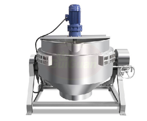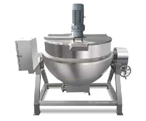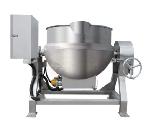 本产品锅体为一次冲压成型的半球不锈钢锅体,采用电加热、蒸汽加热、燃气加热,搅拌方式采用特殊的倾斜传动,使用的行星搅拌器与锅体充分接触,实现传动公转与自转的不整数传动比,使锅内无搅拌死角。使用先进的传动与密封结构,使传动部分与锅内洁净、卫生。采用变频调速动力,运行更平稳。电磁加热形式打破了明火烹调方式,具有升温快、无明火、无烟尘、无有害气体,对周围环境不产生热辐射,安全性好和外观美观等特点,是性能优良的食品加工设备。
